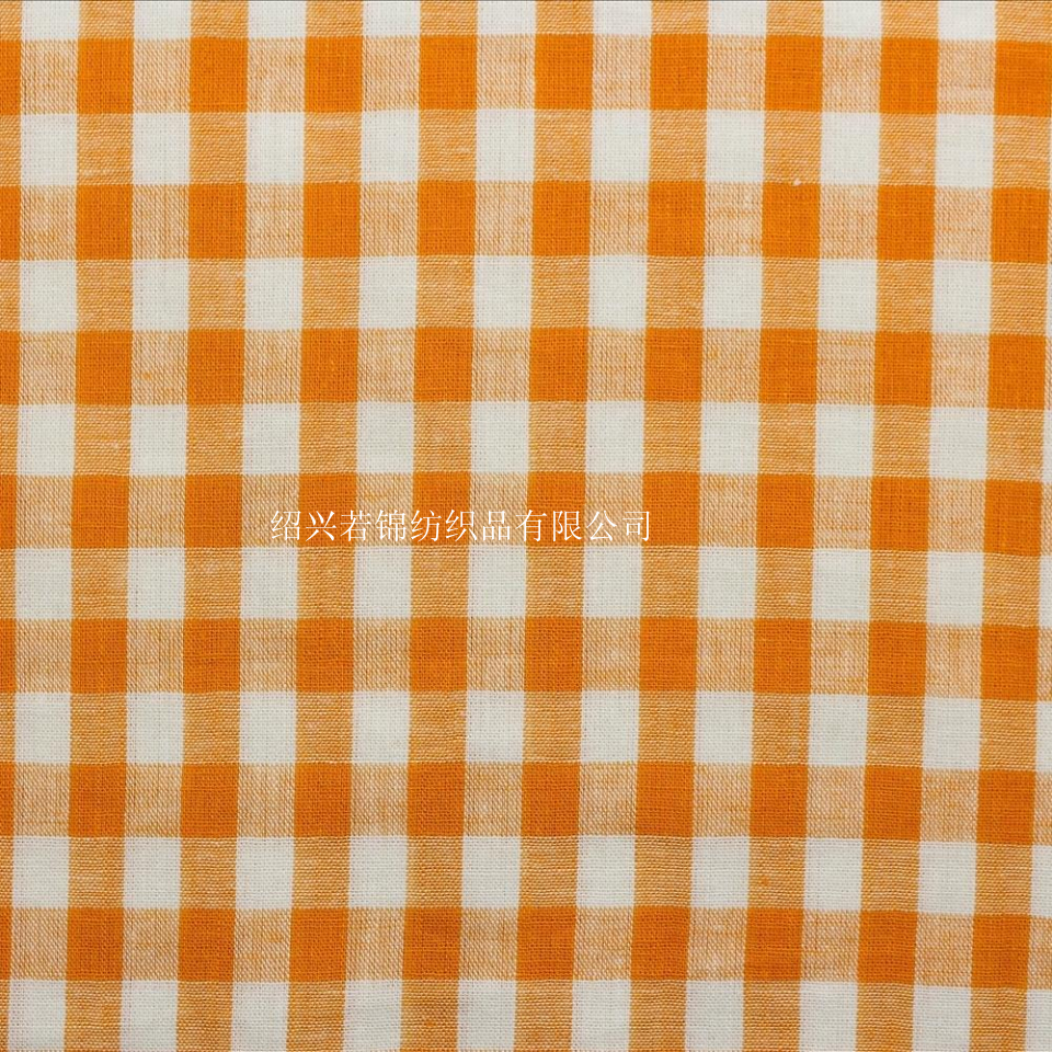 黄格子梭织棉麻时尚女装面料 柯桥女装裙装,时尚衬衫上衣用布